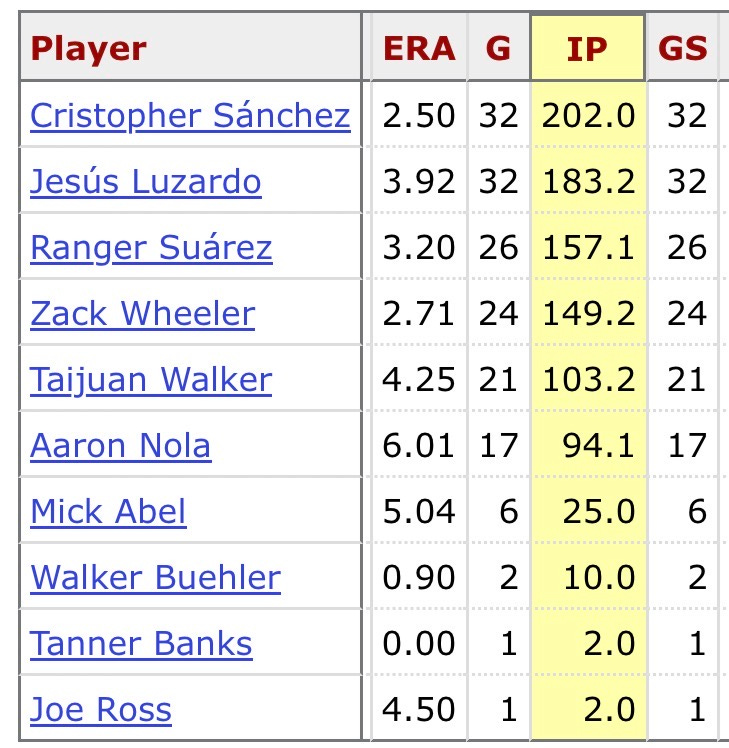 Replacing Ranger and injured-Nola’s innings with a combined 3.50 ERA from Painter/healthy-Nola would bring the starting rotation’s overall ERA down from 3.53 to 3.33.